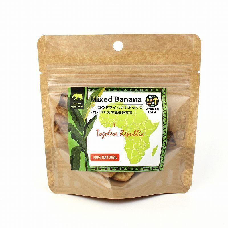西アフリカ、トーゴ産のアップルバナナを、丸ごと/半身/輪切りカットしてドライフルーツにしたものをミックスしました。切り方や乾燥具合によって風味も異なってくるドライバナナのいろいろな表情をお楽しみいただくことができる珍しいミックスです。原材料のバナナは農薬・化学肥料を使わずに育てられた甘みが強くほのかな酸味があるバナナです。漂白剤やシロップなどの添加物も一切使っていません。自然の味わいをお楽しみください。