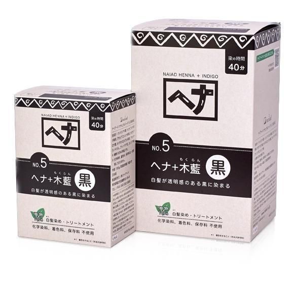 ヘナ+木藍(黒)●染め上がり:白髪が透明感のある黒に染まります。